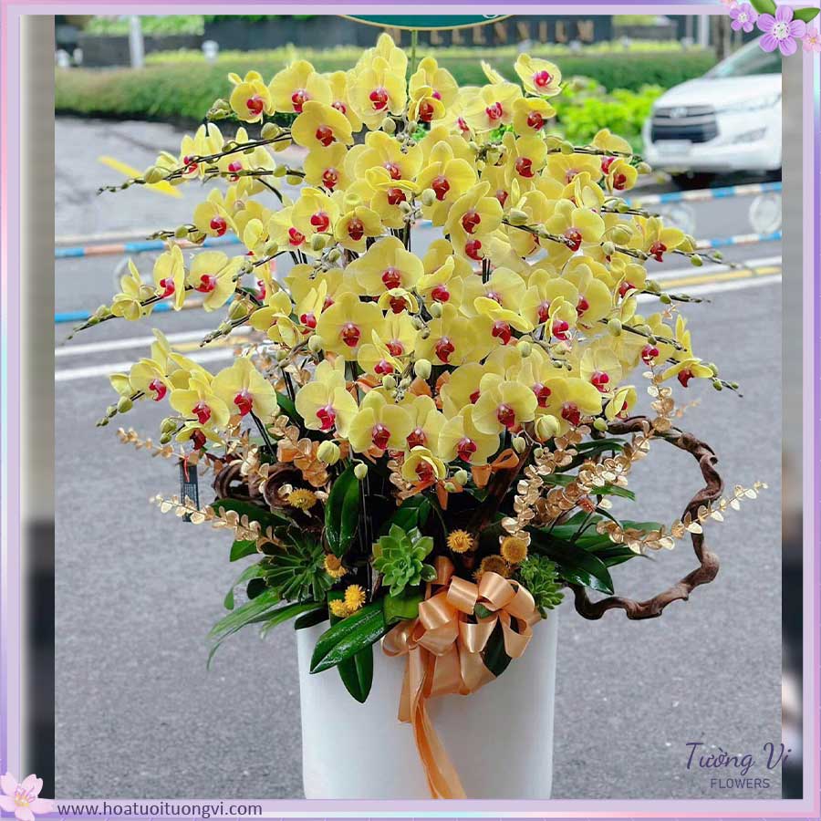Lan hồ điệp vàng là loài hoa mang vẻ đẹp rực rỡ, tượng trưng cho sự thịnh vượng, may mắn và thành công bền vững. Tại Shop Hoa Tươi Tường Vi Flower, chúng tôi trân trọng giới thiệu mẫu Lan Hồ Điệp Sắc Vàng Thịnh Vượng với tone vàng sang trọng, tinh tế, thích hợp làm quà tặng khai trương, mừng tân gia, chúc thăng chức hay tri ân đối tác.